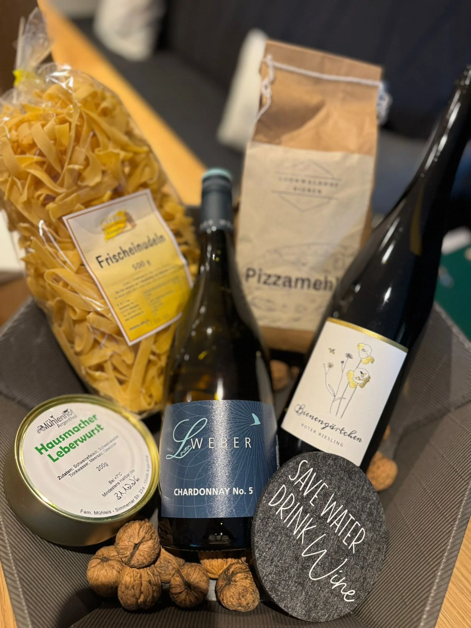 Freuen Sie sich auf eine gemixte 6er Box an Weinen, mit der Sie Geld sparen und Neues entdecken. Jedes Paket ist eine Wundertüte in Flaschenform. Im Paket kann enthalten sein Weißwein, Rotwein, Rosé aus unserer Gutsweinlinie.